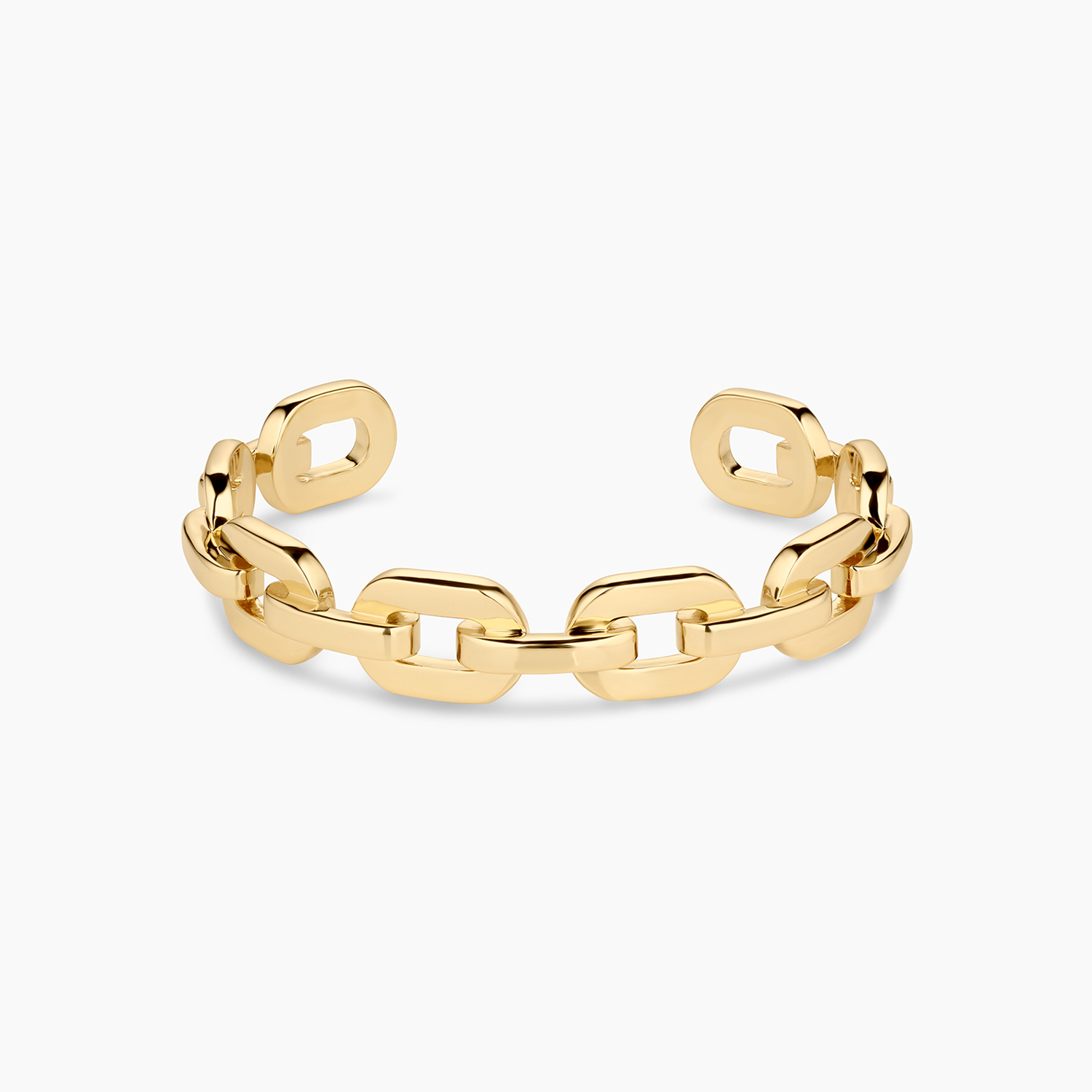 This cuff features a maxi chain link design. Its open design ensures a comfortable fit, making it a versatile piece for any occasion. Embrace your individuality with the Janice Cuff Bracelet—where classic beauty meets bold style, creating an accessory that exudes confidence and personality.