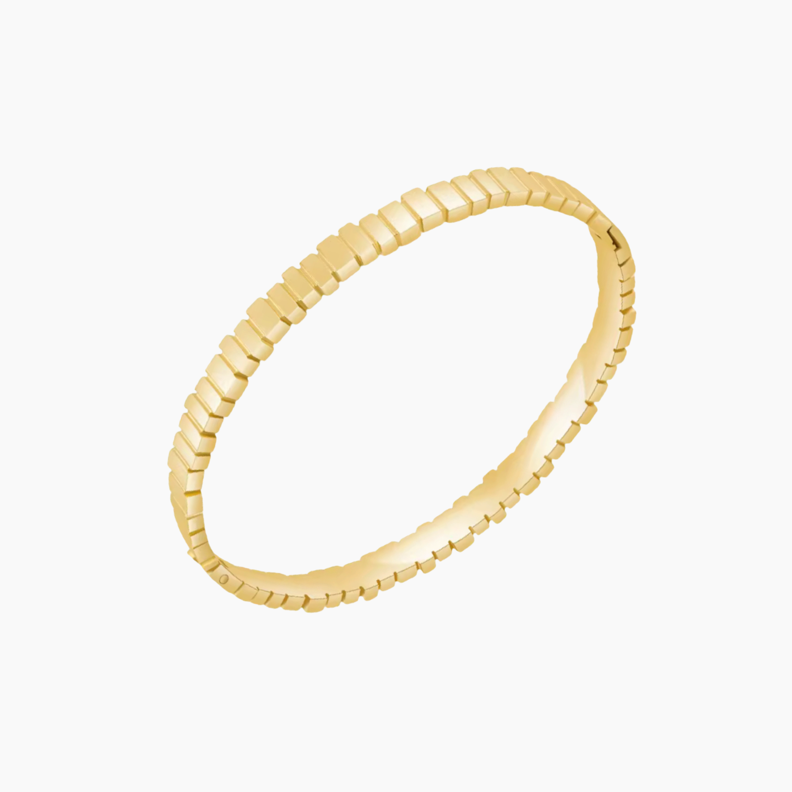 The Brooklyn Bracelet features a polished, shiny finish that adds a touch of timeless elegance to any ensemble. Its waterproof design ensures lasting durability, making it perfect for everyday wear. This versatile bangle serves as an ideal base piece to stack with other bracelets, effortlessly enhancing your sophisticated styling.