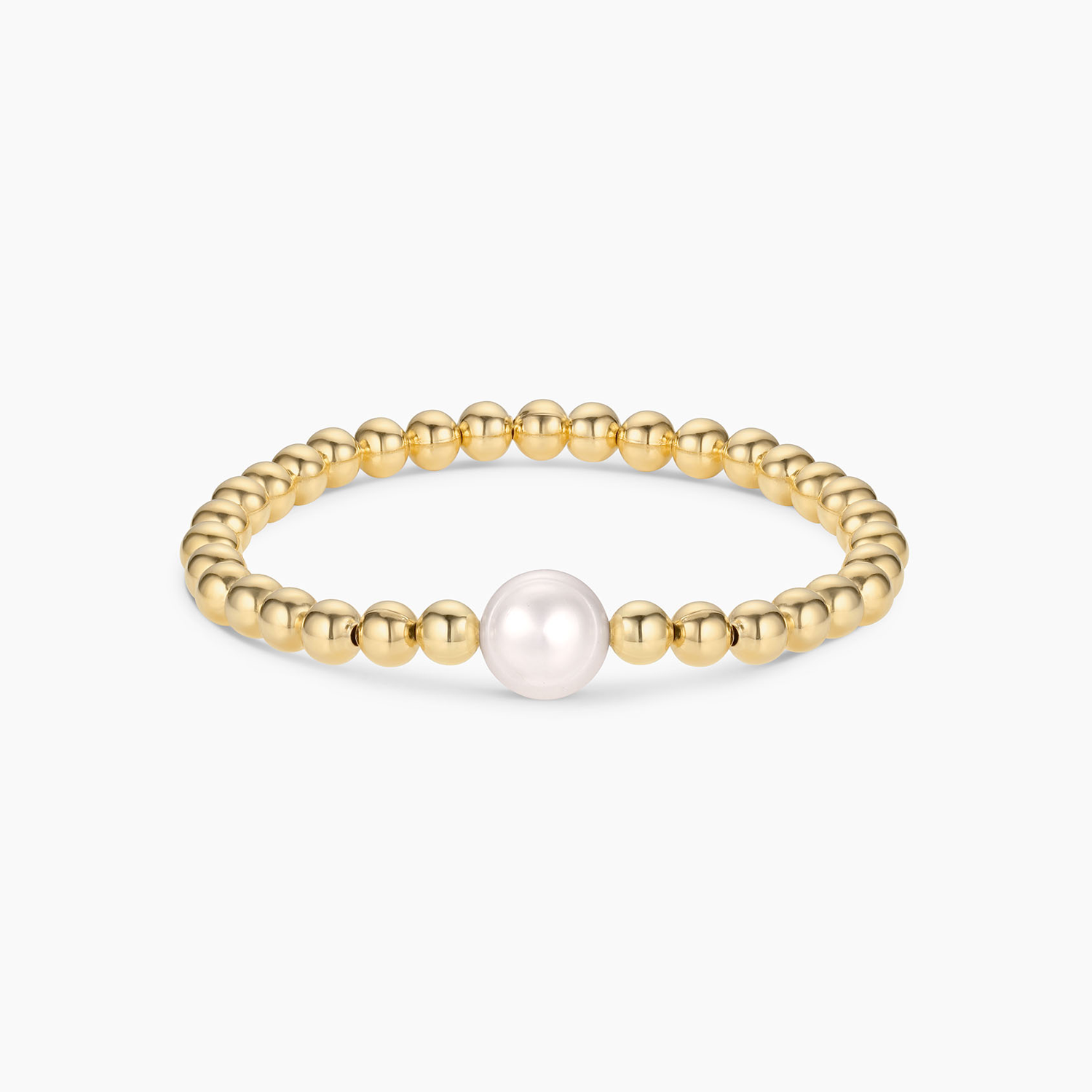 Handcrafted in our Raleigh atelier, the Celine Elastic Bracelet combines lustrous gold beads with a unique baroque freshwater pearl. Its flexible design ensures a comfortable fit, making it an elegant addition to any wrist and ideal for layering with your favorite bracelets to create a refined, personalized look.