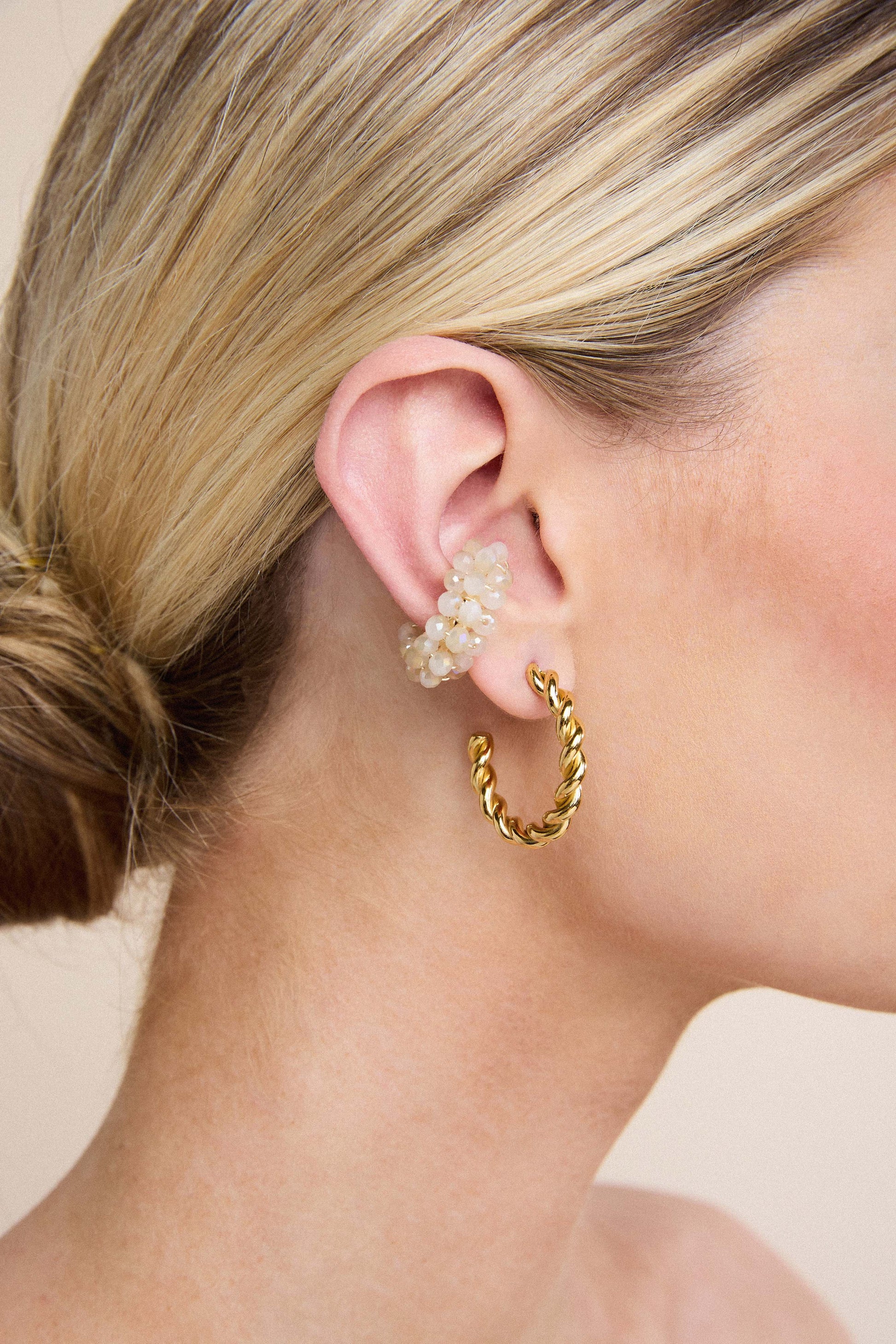 Featuring a striking twisted texture that sets them apart as a bold statement piece. Crafted from 18k gold plated stainless steel, these lightweight hoops blend modern design with timeless elegance. Confidently showcase your unique style with these authentic and stylish accessories that add a touch of fearless fashion to any outfit.